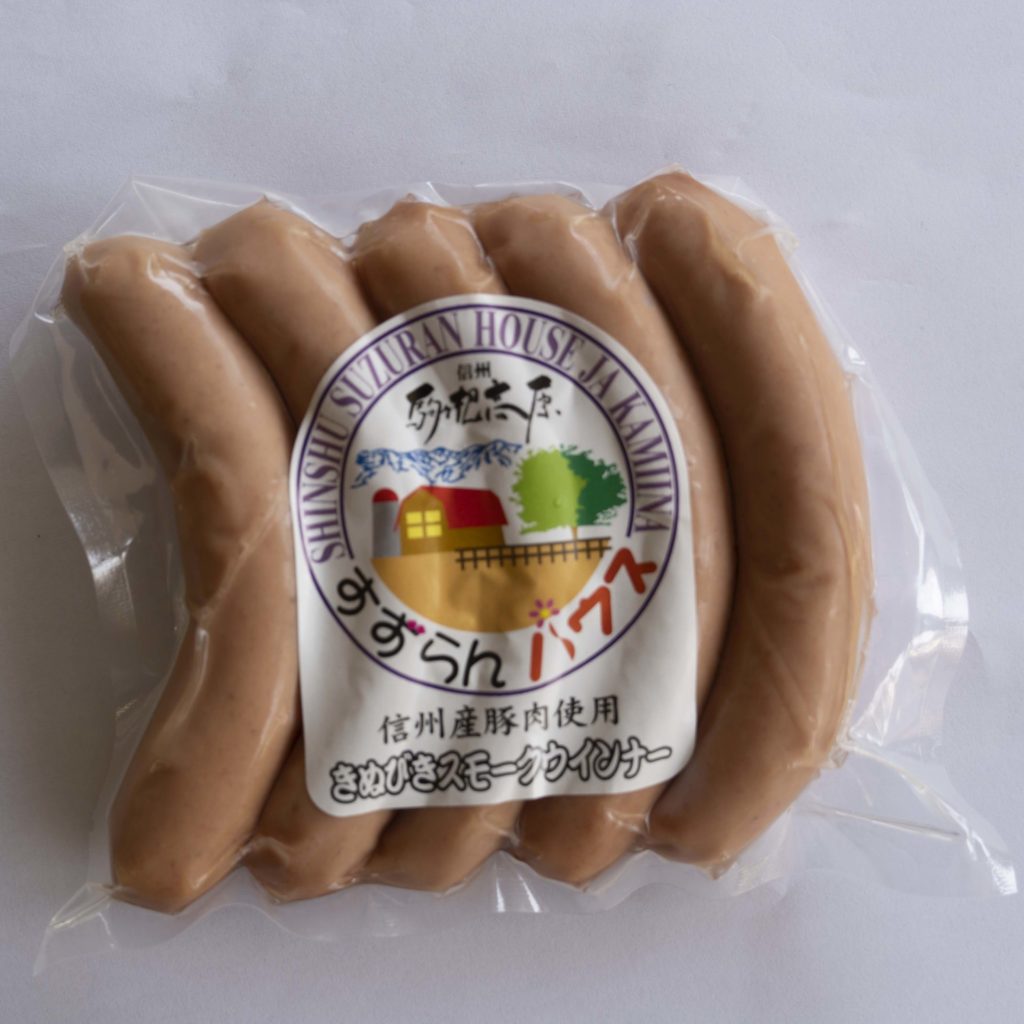 しっとりとした味わいと、なめらかな食感の絹びきのスモークウインナーです。