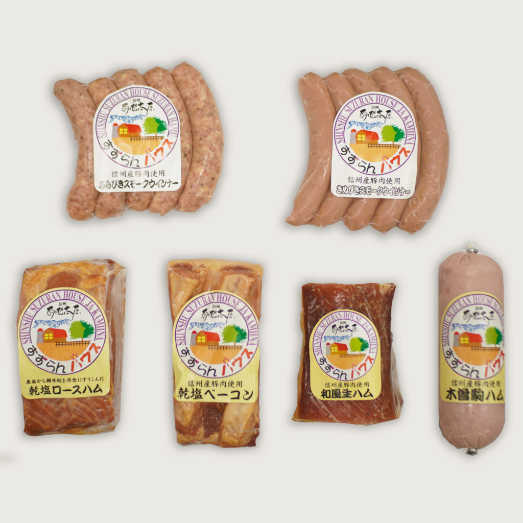 ・あらびきスモークウインナー  ・きぬびきスモークウインナー  ・バジルウインナー  ・ガーリックウインナー  ・乾塩ロースハム  ・乾塩ベーコン  ・和風生ハム  ・木曽駒ハム